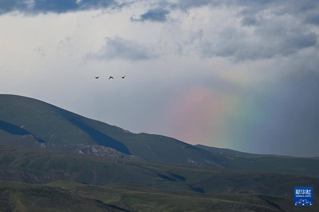 8月3日,一道彩虹出现在那拉提草原的上空。