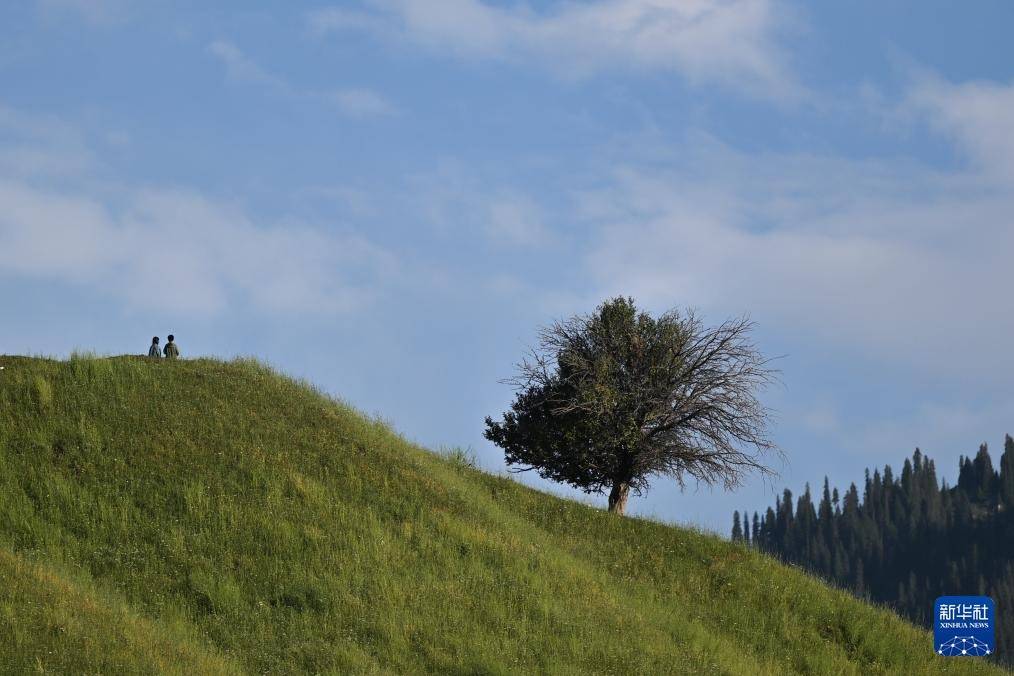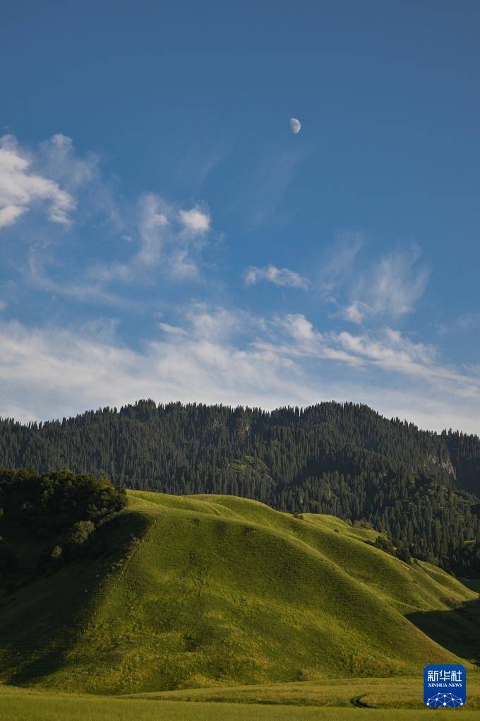 8月3日,一抹凸月出现在那拉提草原的上空。
