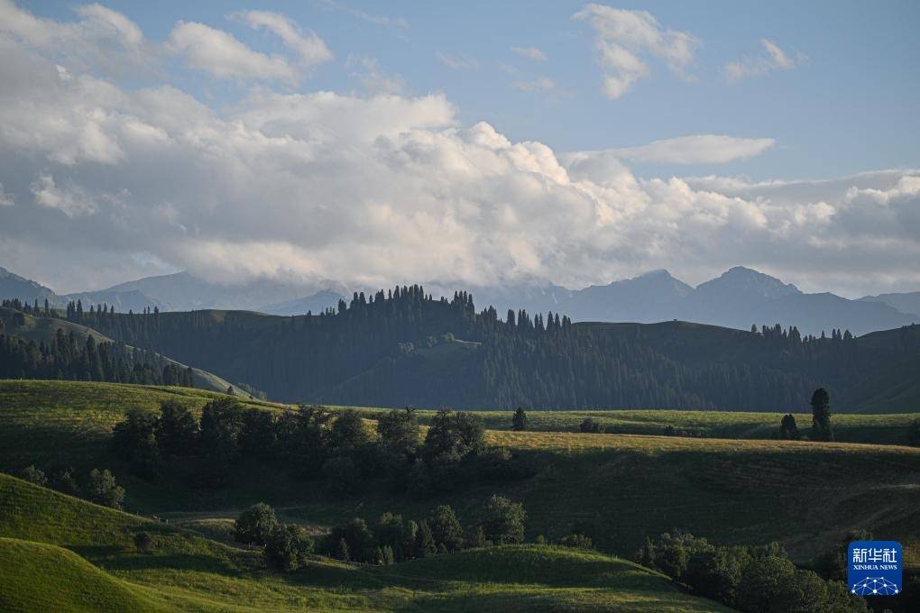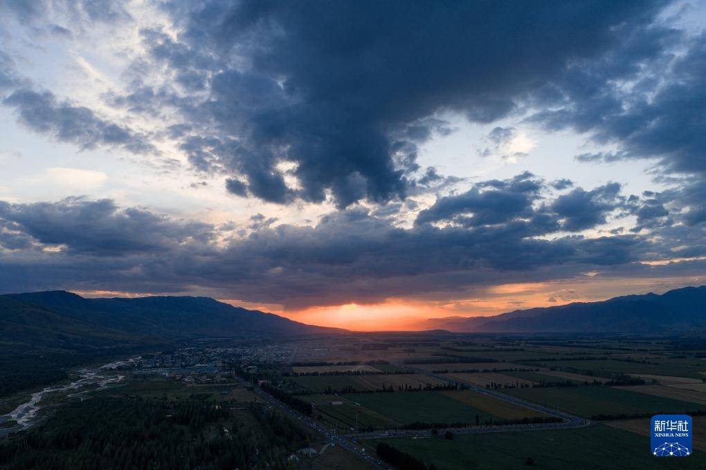 这是8月3日在那拉提草原拍摄的晚霞(无人机照片)。